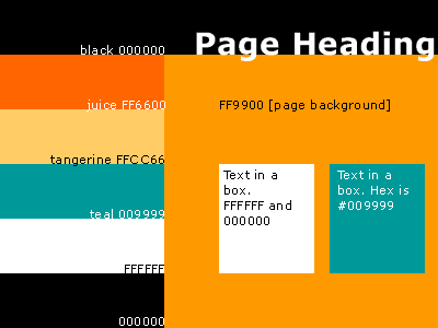 Mango Palette From Advanced Online Media Production What you see at left is a GIF image, which was made in Photoshop. > See the purple palette > See this site's palette For more information about colors, please go to Resources for Web Workers and click the link on the lower right: Color Tips |